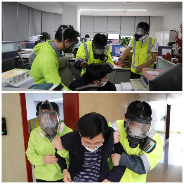 在6樓辦公區(qū),模擬了辦公室著火,員工吸入過(guò)量煙霧陷入昏迷無(wú)法撤離的場(chǎng)景。公司接到險(xiǎn)情通知后,立即啟動(dòng)應(yīng)急預(yù)案,由安委辦工作人員判斷傷員所在場(chǎng)所安全性,組織應(yīng)急救援隊(duì)穿戴防護(hù)警示服、配戴防煙面罩迅速進(jìn)入險(xiǎn)情區(qū)域進(jìn)行救援。經(jīng)過(guò)搜尋成功將昏迷人員救出。