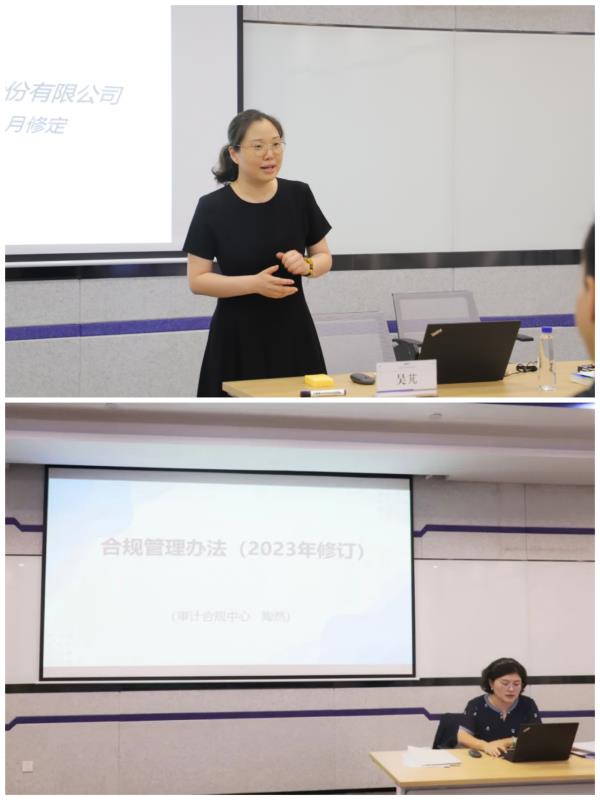 兩位部門負(fù)責(zé)人受邀擔(dān)任內(nèi)部講師,為大家?guī)磉M口流程培訓(xùn)及重要制度講解。商務(wù)部負(fù)責(zé)人吳芃精心繪制了進口業(yè)務(wù)流程圖,并對流程操作說明進行了詳細(xì)講解,同時配合現(xiàn)場提問,以問促思,以問促學(xué)。審計合規(guī)中心經(jīng)理陶然介紹了《合規(guī)管理辦法》《合同卷宗管理暫行規(guī)定》《資金收付管理辦法》等重要制度,圖文并茂,一目了然,進一步加強了大家對制度化和規(guī)范化的認(rèn)知。