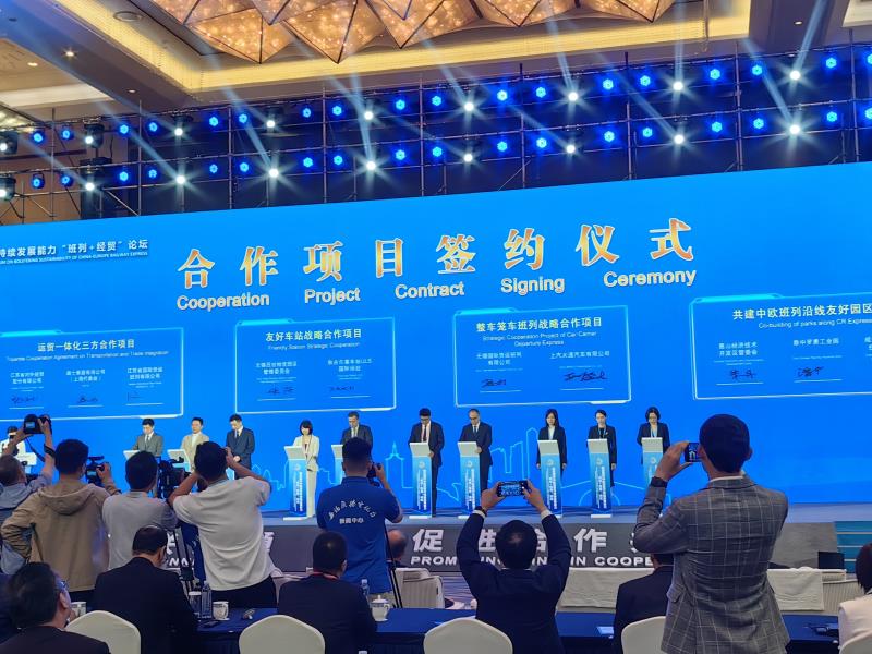 9月15日,中歐班列國際合作論壇在江蘇省連云港市成功舉辦,本次論壇共形成48項(xiàng)合作成果。其中,江蘇外貿(mào)公司與瑞士TELF AG公司、江蘇省班列公司的運(yùn)貿(mào)一體化三方合作協(xié)議在“班列+經(jīng)貿(mào)”分論壇上成功簽約。江蘇外貿(mào)公司總經(jīng)理助理張之棟代表江蘇外貿(mào)簽署該協(xié)議。