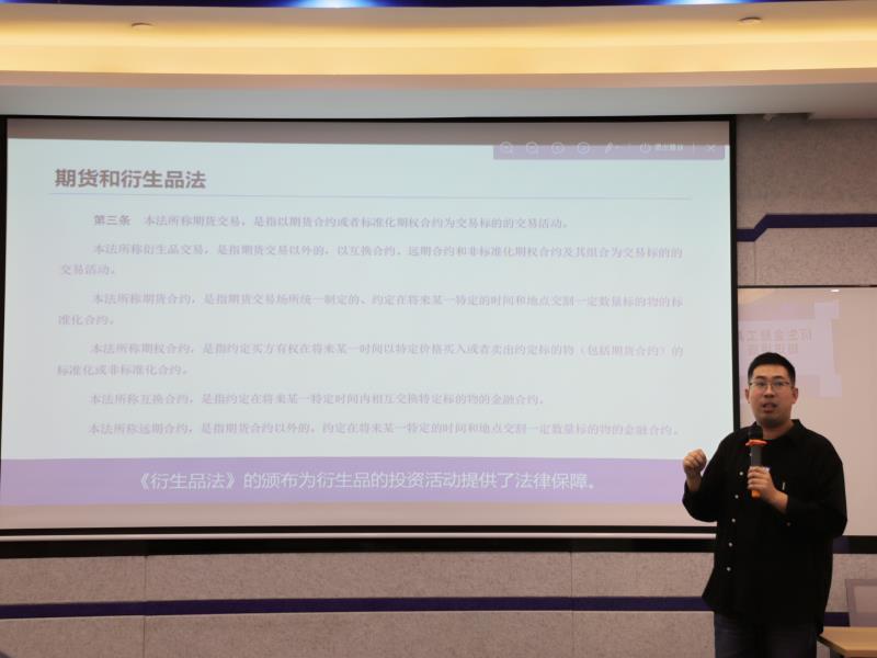 為幫助員工掌握衍生品套期保值等相關(guān)知識(shí),明晰利用期貨期權(quán)工具對沖大宗貿(mào)易的價(jià)格風(fēng)險(xiǎn),10月11日下午,外貿(mào)公司開展衍生金融工具知識(shí)講座,特邀弘業(yè)期貨上海財(cái)富管理部副總經(jīng)理季佳佳主講,公司法審合規(guī)部及業(yè)務(wù)部相關(guān)人員參與本次培訓(xùn)。