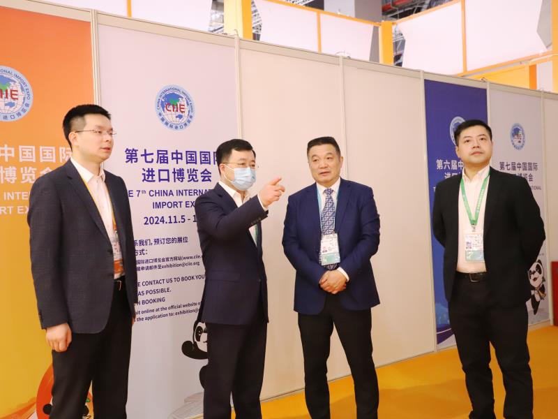 進博會期間,省國資委副主任、黨委委員李秀斌,省國資委二級巡視員劉偉,蘇豪控股集團黨委委員、副總裁李明、晉永甫、蔣成效先后到展位視察調(diào)研、見證簽約、看望現(xiàn)場工作人員。李秀斌在參觀展位、聽取公司經(jīng)營情況介紹后,對江蘇外貿(mào)公司近年來主營品種的供應(yīng)鏈體系建設(shè)表示肯定,并提出了“聚焦主業(yè)、精耕細作、防住風險”的工作要求。