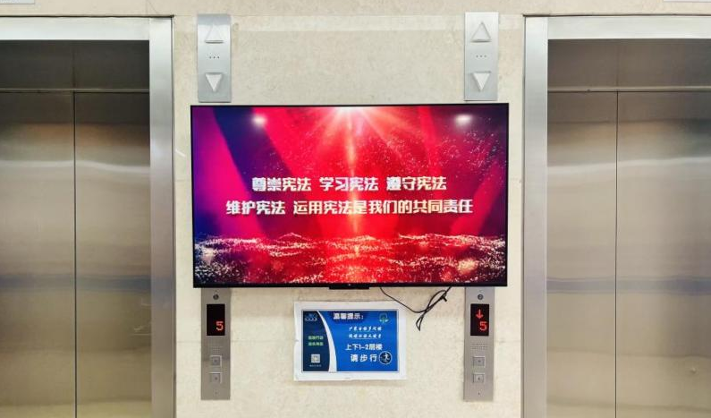 外貿(mào)公司利用既有的設(shè)施資源,在公司電梯口屏幕上連續(xù)播放憲法普法宣傳系列視頻,進一步加深大家對憲法的理解和認(rèn)識。視頻以“憲法的顏色”“我與憲法”為主題,講述憲法與我們?nèi)粘Vg的故事,將憲法法條通過案例以簡單生動的語言帶入到我們生活之中,以喜聞樂見的方式將憲法呈現(xiàn)在大眾眼前,使憲法精神深入人心。公司全體員工越來越多地了解到憲法的地位,知曉憲法與我們?nèi)粘I畹木o密關(guān)系,形成自覺尊法學(xué)法守法用法的良好氛圍。