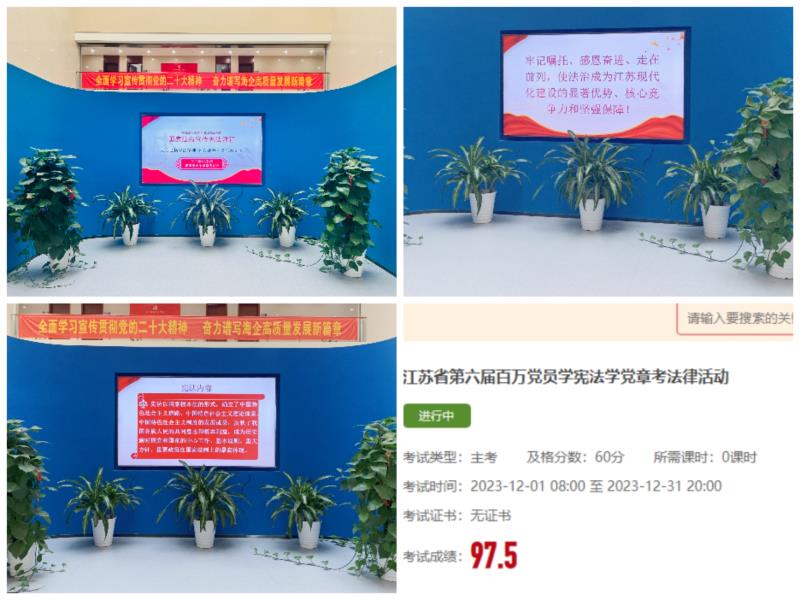 期間,外貿(mào)公司緊緊圍繞“憲法的起源”“什么是憲法”“憲法的法律地位”等內(nèi)容,通過在公司中庭循環(huán)播放憲法宣傳ppt、在公司官方公眾號發(fā)布以學(xué)習(xí)憲法為主題的推文等形式介紹憲法主要內(nèi)容及地位,全面展現(xiàn)憲法沿革、主要內(nèi)容、憲法宣誓等相關(guān)知識,弘揚憲法權(quán)威。與此同時,外貿(mào)公司黨總支積極落實開展江蘇省委組織部組織的第六屆百萬黨員學(xué)憲法學(xué)黨章考法律活動,號召公司全體黨員同志踴躍參與憲法、民法典等法律法規(guī)的專題學(xué)習(xí),鼓勵全體員工積極參加學(xué)憲法學(xué)黨章考法律活動考試,確?;顒佑辛τ行蛲七M。