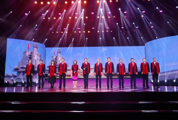 在“奮進(jìn)蘇豪跟黨走”的尾聲環(huán)節(jié),集團(tuán)領(lǐng)導(dǎo)班子步入舞臺(tái),臺(tái)上臺(tái)下、演員觀眾融為一體,同唱《明天會(huì)更好》?;顒?dòng)最后,全體班子成員集體拜年,為本場(chǎng)活動(dòng)畫(huà)上了圓滿的句號(hào)。