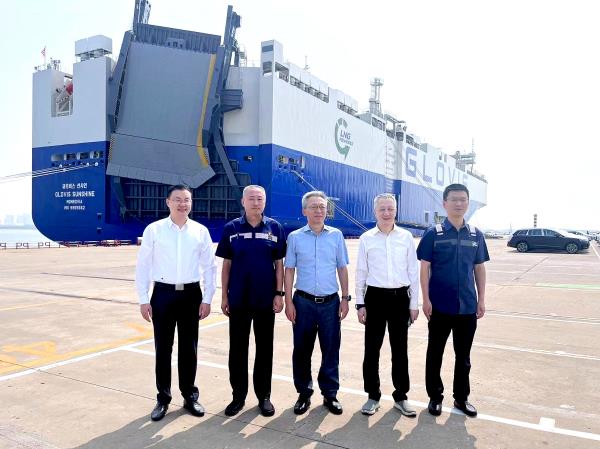 會后,陳述一行實地參觀天津港滾裝船碼頭,詳細了解天津港汽車進出口物流情況。
