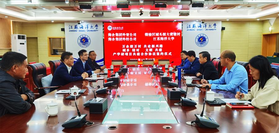 許興友介紹了江蘇海洋大學發(fā)展歷程和基本情況,對海企集團及外貿(mào)公司、外經(jīng)公司開展產(chǎn)學研項目表示歡迎和感謝。許興友指出,近年來,海洋大學積極踐行社會責任,服務地方經(jīng)濟發(fā)展,本次項目合作是學校助力“萬企聯(lián)萬村”的有力行動。學校將組織海洋學院專業(yè)技術團隊,全程跟蹤做好項目設計和建設,為大黃墩村提供技術指導和管理培訓,全力以赴把好事辦好。