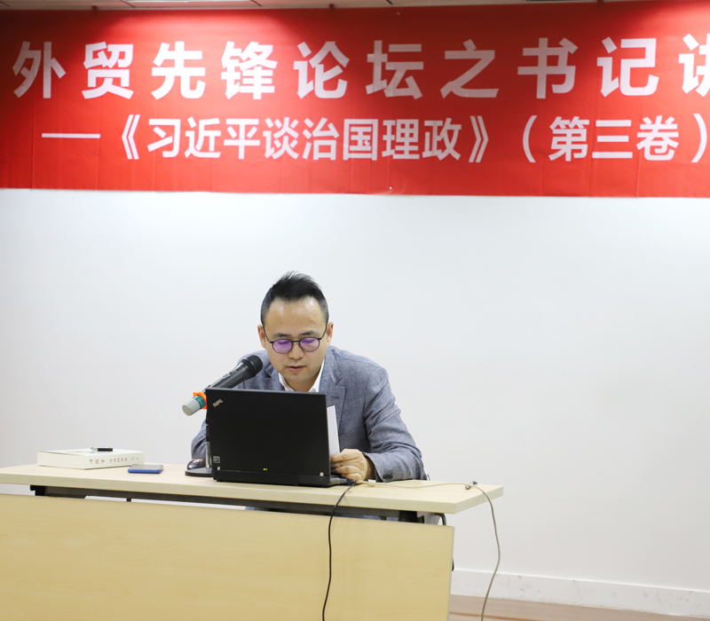 11月2日下午,外貿(mào)公司開展先鋒論壇之書記講黨課活動,專題學(xué)習(xí)導(dǎo)讀《習(xí)近平談治國理政》(第三卷)。黨總支委員、副總經(jīng)理、第一支部書記謝保成領(lǐng)學(xué)《習(xí)近平談治國理政》(第三卷)主要內(nèi)容及其邏輯結(jié)構(gòu)。