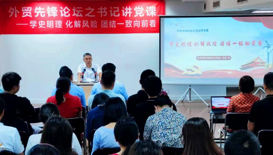 今年是中國(guó)共產(chǎn)黨成立100周年。為學(xué)習(xí)貫徹習(xí)近平總書(shū)記在黨史學(xué)習(xí)教育動(dòng)員大會(huì)上發(fā)表的重要講話,落實(shí)集團(tuán)黨史學(xué)習(xí)教育工作方案,進(jìn)一步深入推進(jìn)黨史學(xué)習(xí)教育,8月31日下午,外貿(mào)公司黨總支書(shū)記、董事長(zhǎng)畢武為公司全體黨員和中高層管理干部講授“學(xué)史明理 化解風(fēng)險(xiǎn) 團(tuán)結(jié)一致向前看”主題黨課。