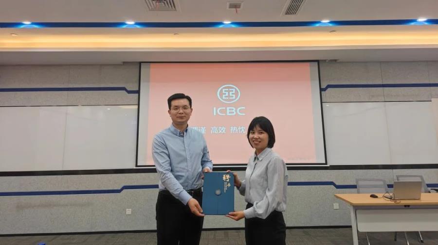 培訓(xùn)課程結(jié)束,外貿(mào)公司黨總支副書記、副總經(jīng)理張強(qiáng)為龍小娟經(jīng)理頒發(fā)特邀講師聘書。