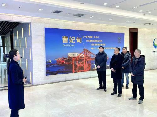 From January 5th to 6th, Liu Mingyi, the general manager of Group’s bulk commodity department, accompanied by Li Juqiang, chairman and general manager of the company, Zhang Qiang, vice general manager of the company, went to visit Caofeidian National open economic zone in Hebei Province. Feng Lei, member of the Caofeidian open economic zone (free trade zone) working committee of CCP and vice director of management committee welcomed the leaders of JSFT. Feng Lei introduced the development history and industrial layout of Caofeidian open economic zone, especially the construction and the operation of four main storage and transportation basement that has been planned for construction of coal, crude oil, ore and natural gas. He also looked forward to cooperate more between two sides in the area of bulk commodities.